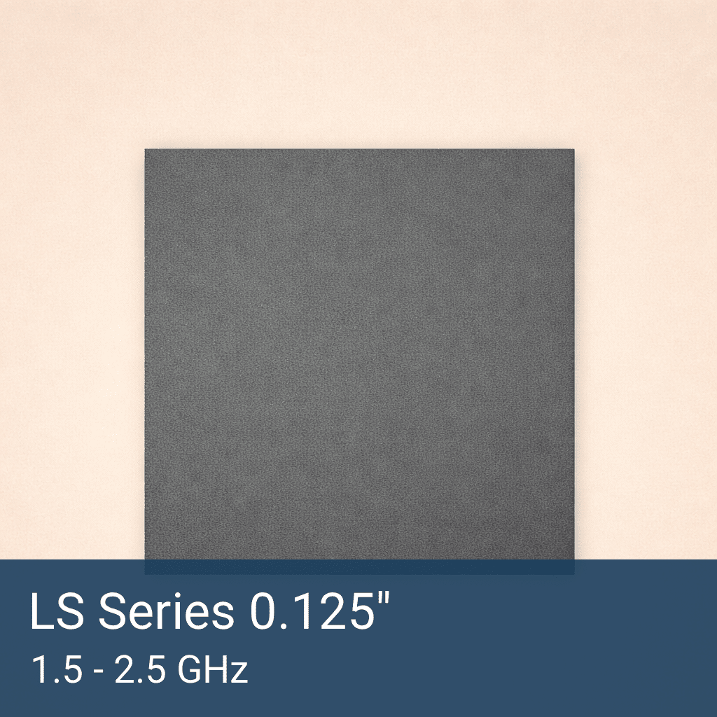 The LS Series 0.125″ thick RF absorber material is the thickest standard option in the LS Series line of iron-loaded silicone elastomer absorbers. Optimized for the L band (1.5 to 2.5 GHz), it delivers the strongest low-frequency absorption of any LS Series thickness.