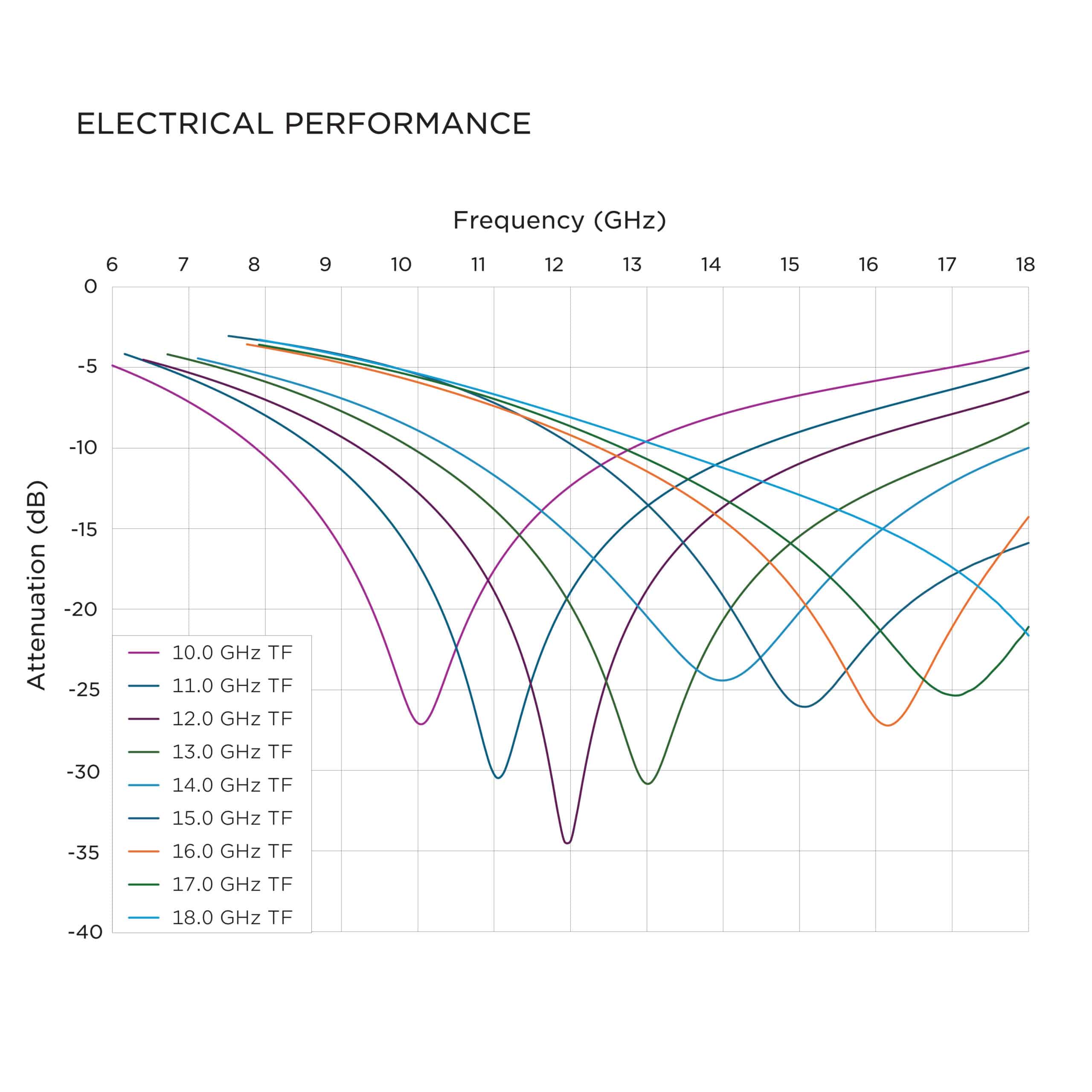 Narrowband cavity resonance suppression at 15.0 GHz, targeted EMI mitigation in Ku-band satellite, 5G backhaul, and point-to-point microwave link systems where peak absorption at a specific frequency is required.